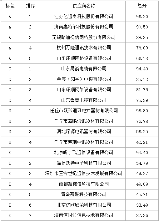 本項(xiàng)目(包段)按照綜合評分法評審,各供應(yīng)商綜合得分由高到低排序如下: